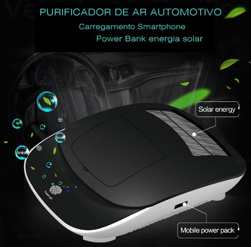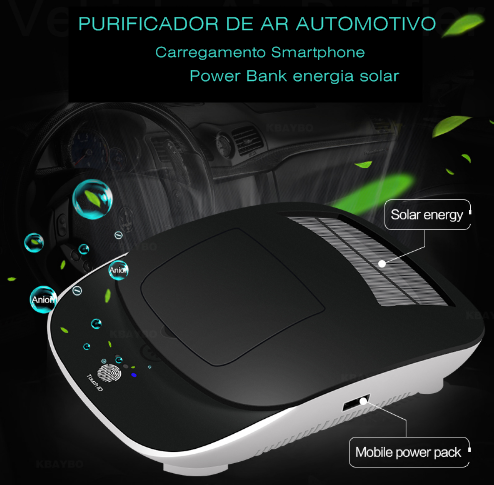 --->Purificador de ar Automotivo por Ozônio Movido por energia solar Com carregador Power Bank para Smartphone